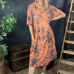 Fleur Floral Cotton Dress Orange