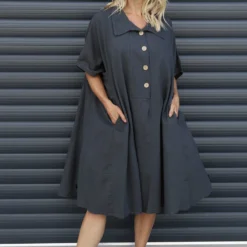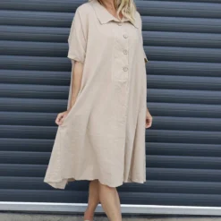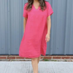 Brindisi Cowl Neck Linen Dress Hot Pink