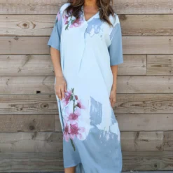 Sandsend Flower Print V Neck Dress Blue
