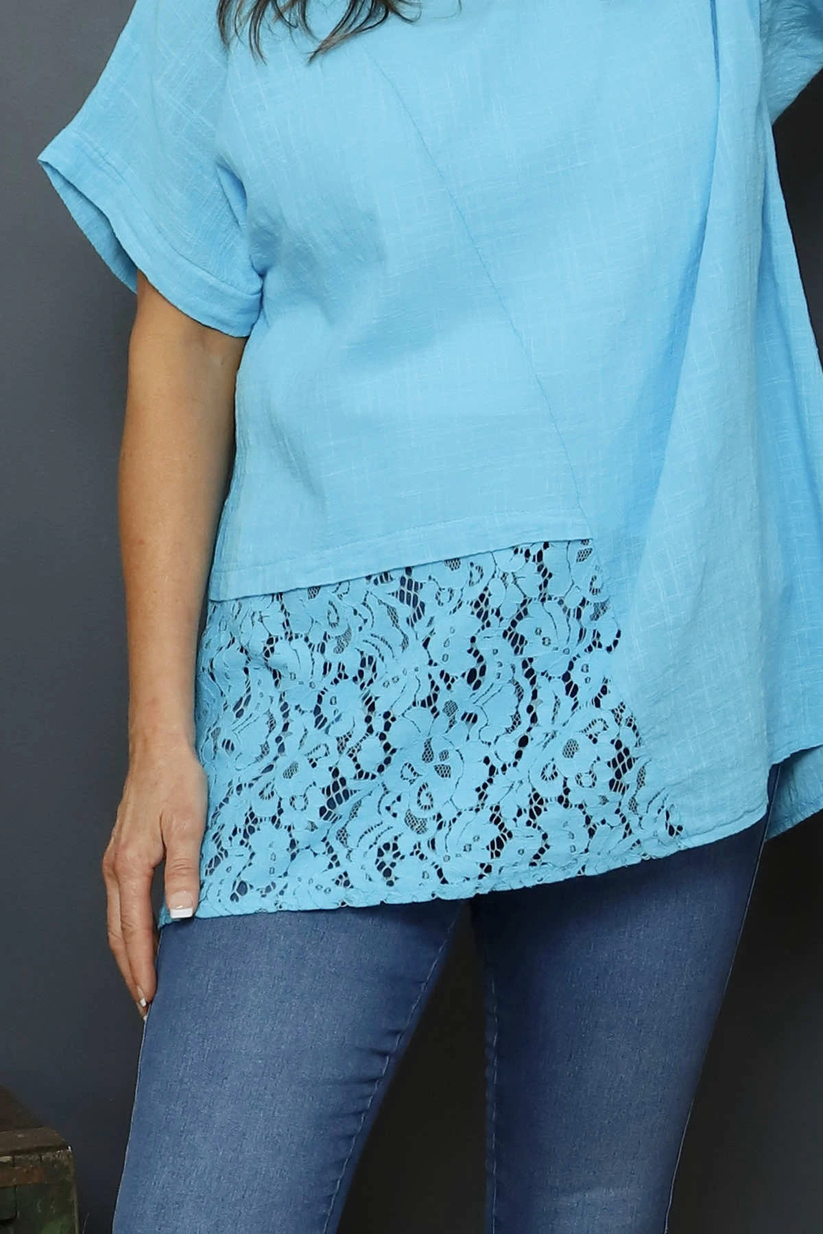 The Rowan Lace Detail Cotton Top is the perfect addition to your wardrobe. Made from cotton, it features short sleeves and a round neckline for a comfortable fit. The lace panel and seam detail add a touch of elegance to this casual top. Upgrade your style with Rowan.