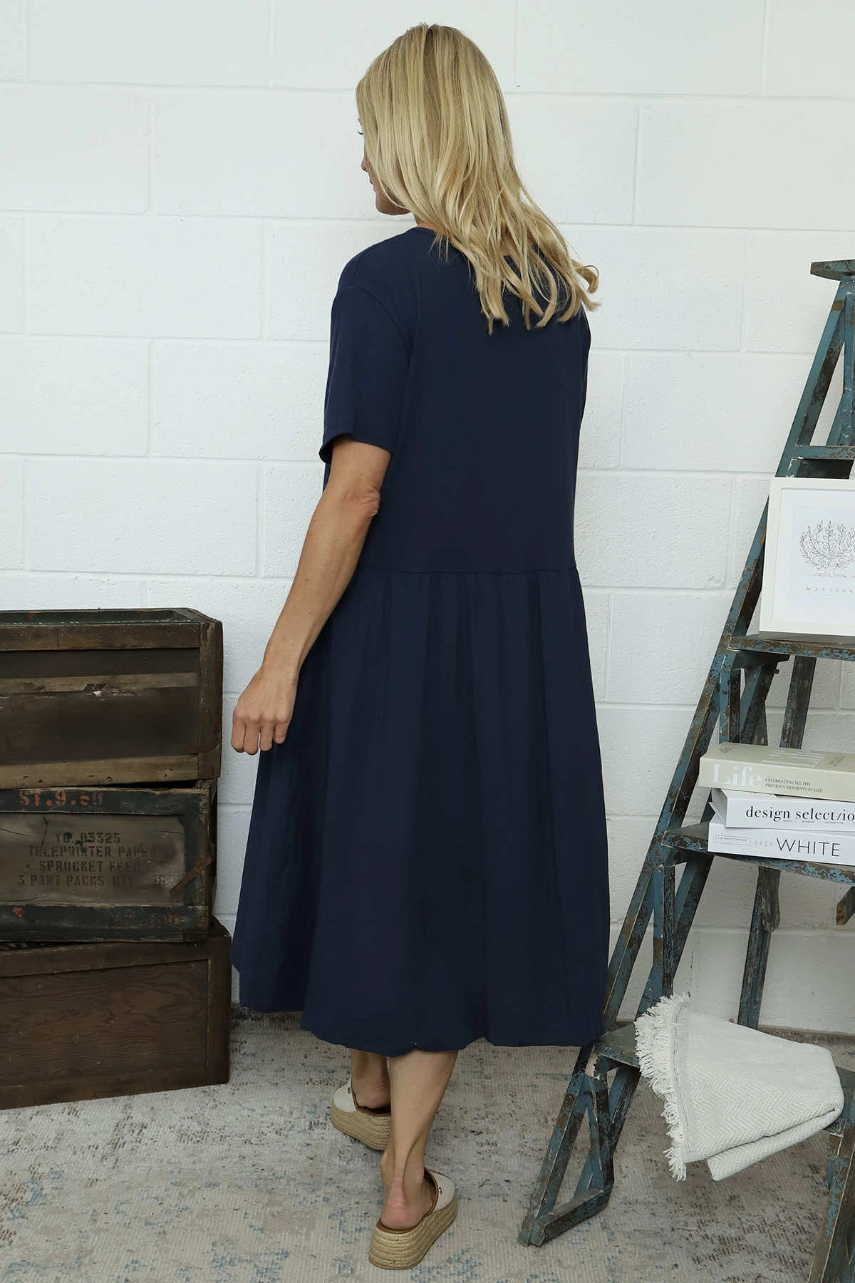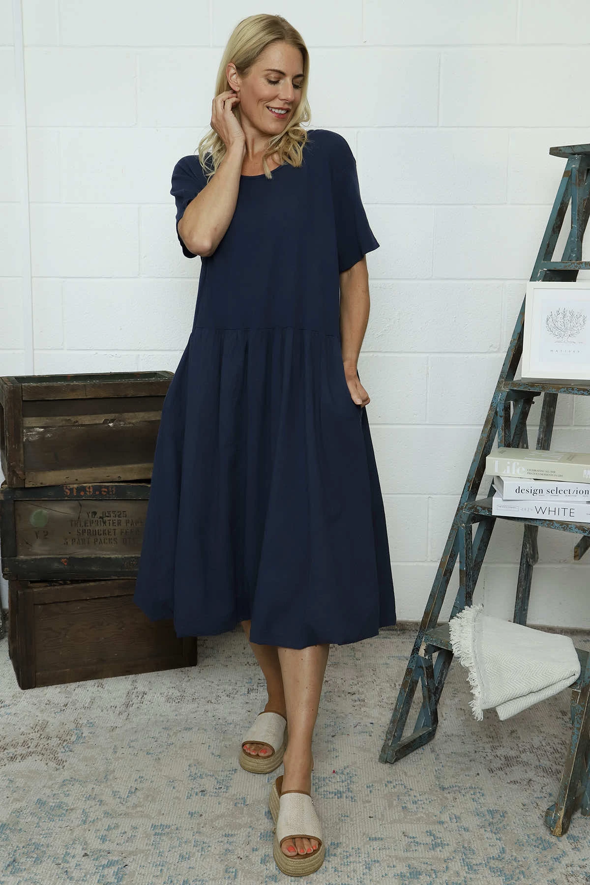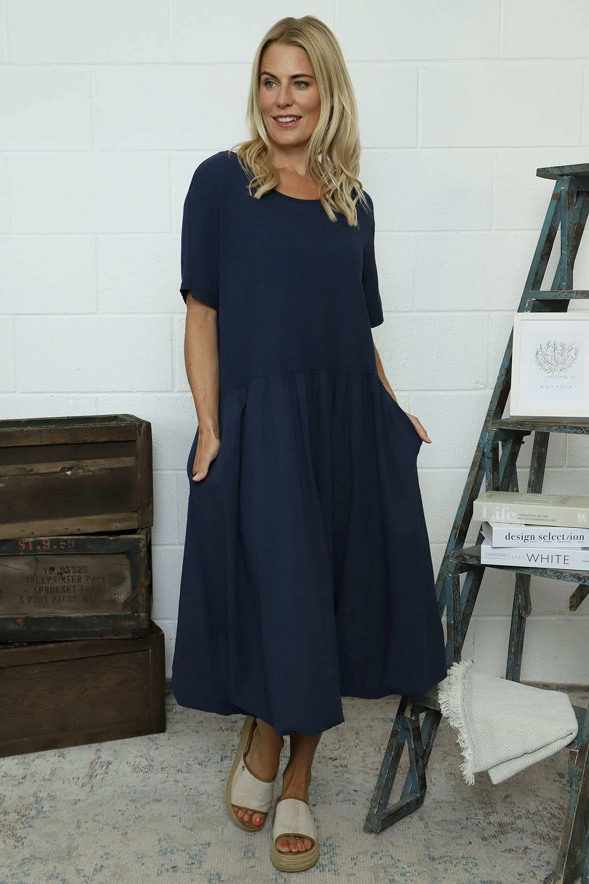 Sandown Puffball Cotton Dress Navy