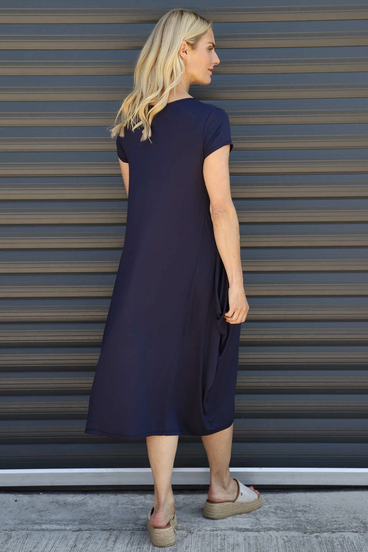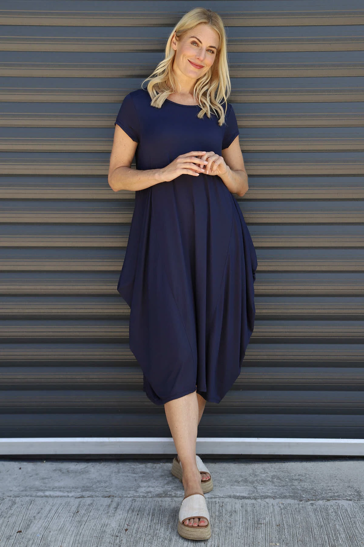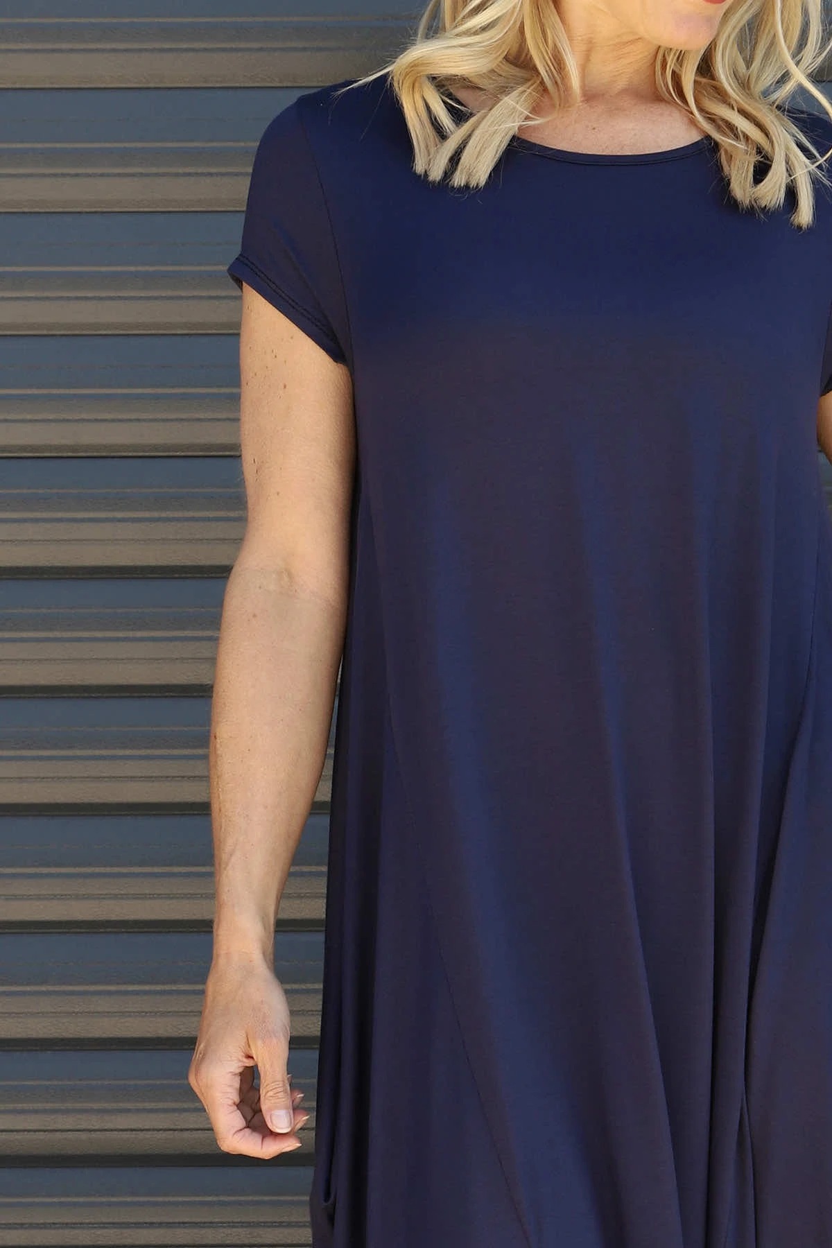 The Sariah Short Sleeve Dress features a soft round neckline that elegantly frames your face with care. Its thoughtfully designed short sleeves offer comfortable movement throughout your day, never restricting but always flattering. This dress provides the perfect foundation for your personal style.