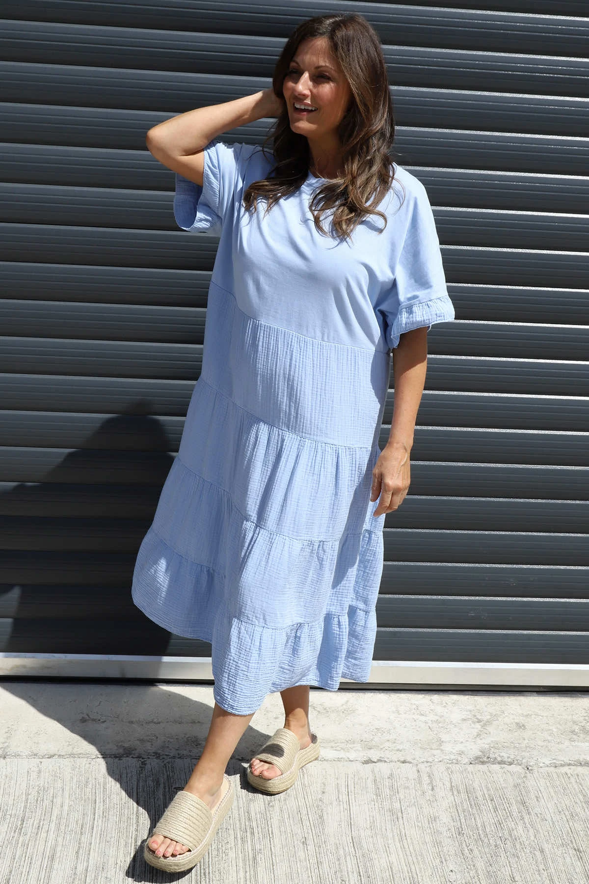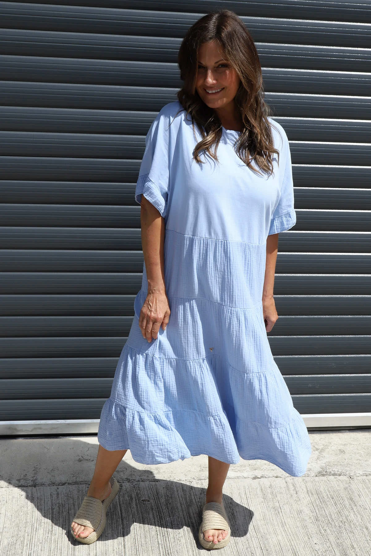 Update your wardrobe with the Soleil Tiered Crinkle Cotton Dress, designed for comfort and style. Featuring a round neckline and short sleeves with delicate crinkle detailing, this dress offers a relaxed yet polished look. The tiered skirt adds movement and charm, while the soft cotton fabric ensures breathability throughout the day. Perfect for effortless elegance in any season.