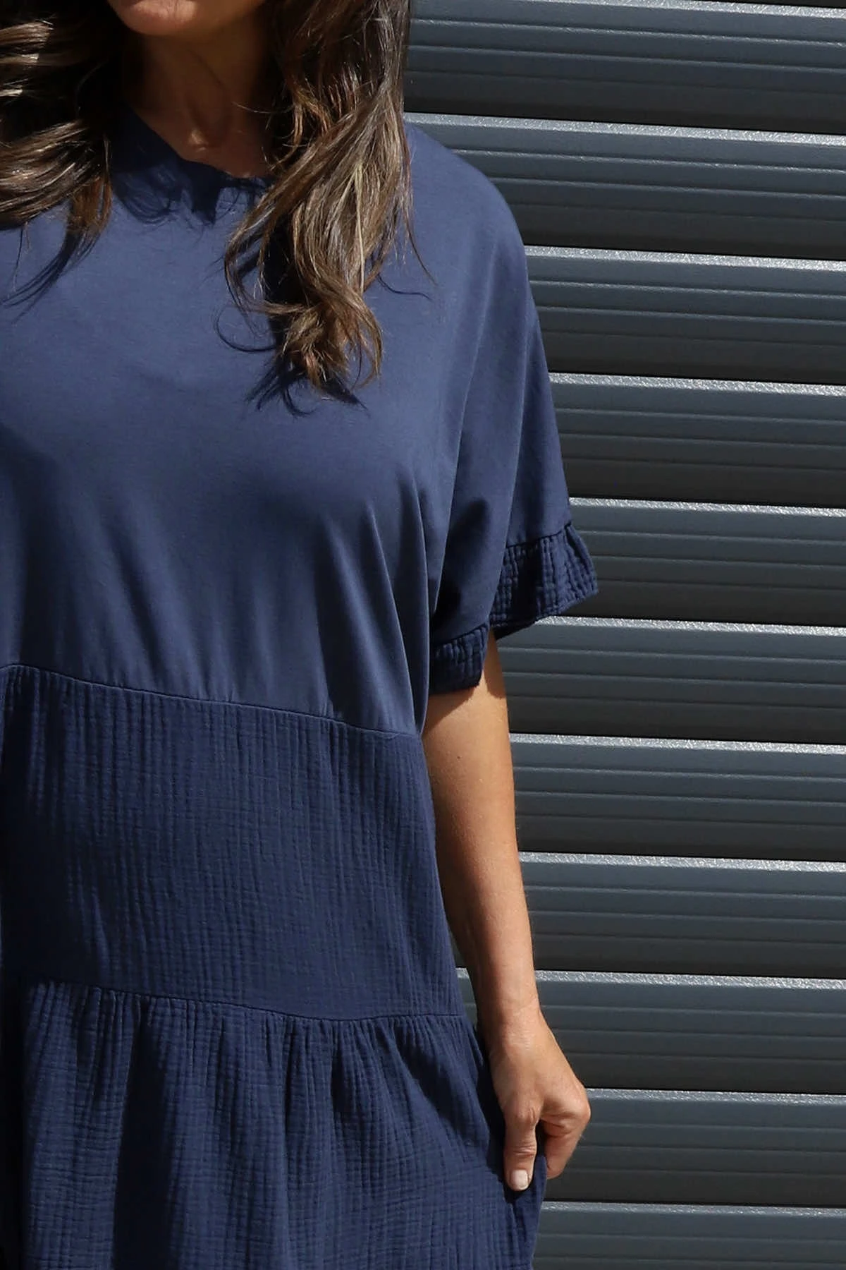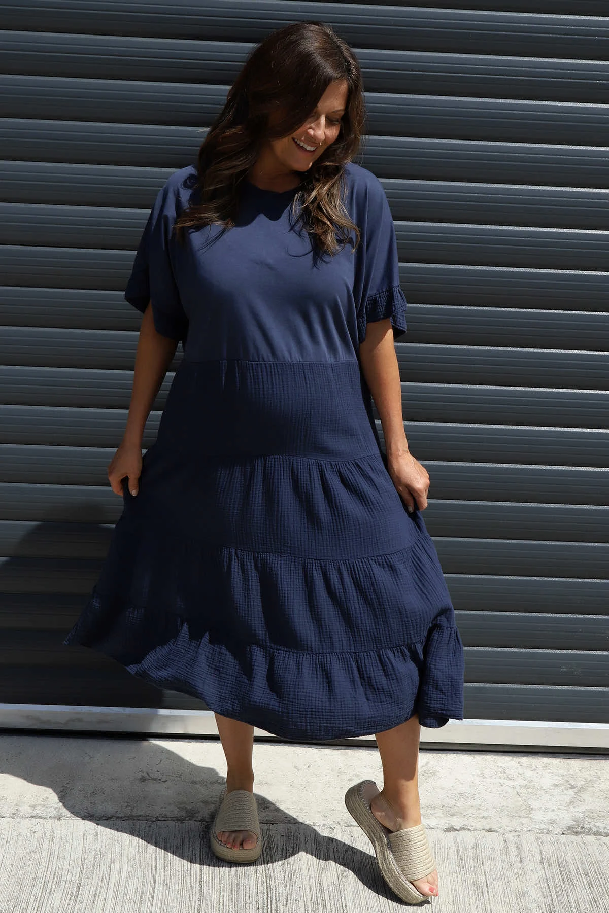 Update your wardrobe with the Soleil Tiered Crinkle Cotton Dress, designed for comfort and style. Featuring a round neckline and short sleeves with delicate crinkle detailing, this dress offers a relaxed yet polished look. The tiered skirt adds movement and charm, while the soft cotton fabric ensures breathability throughout the day. Perfect for effortless elegance in any season.