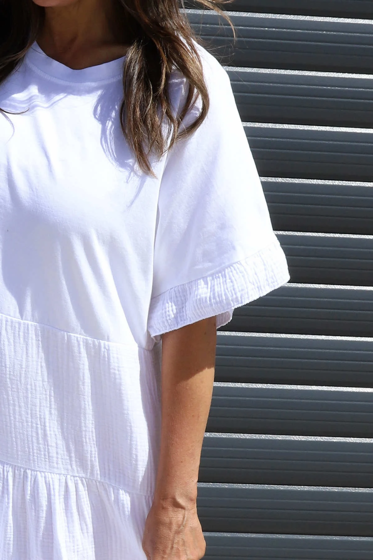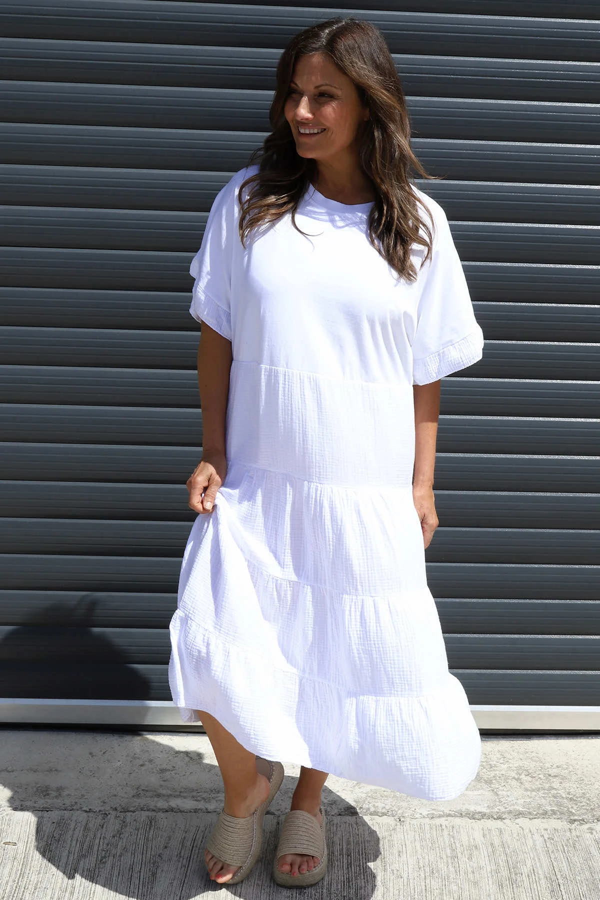 Update your wardrobe with the Soleil Tiered Crinkle Cotton Dress, designed for comfort and style. Featuring a round neckline and short sleeves with delicate crinkle detailing, this dress offers a relaxed yet polished look. The tiered skirt adds movement and charm, while the soft cotton fabric ensures breathability throughout the day. Perfect for effortless elegance in any season.