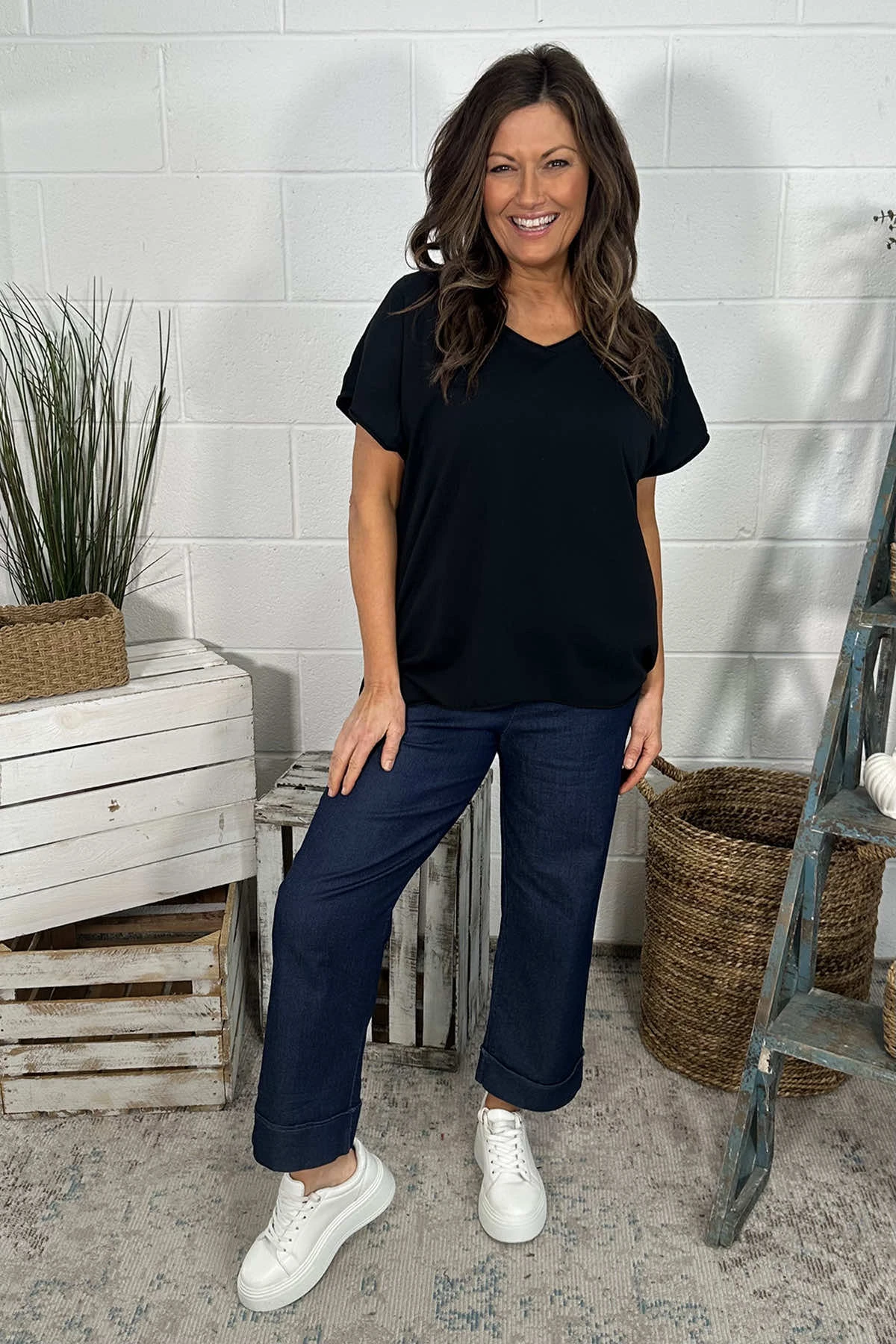 Introducing the Tova V-Neck Cotton Top. This classic v-neck t-shirt is crafted from thick, high-quality cotton, making it the perfect go-to for the warm months. Elevate your daily look with this sophisticated and luxurious top.