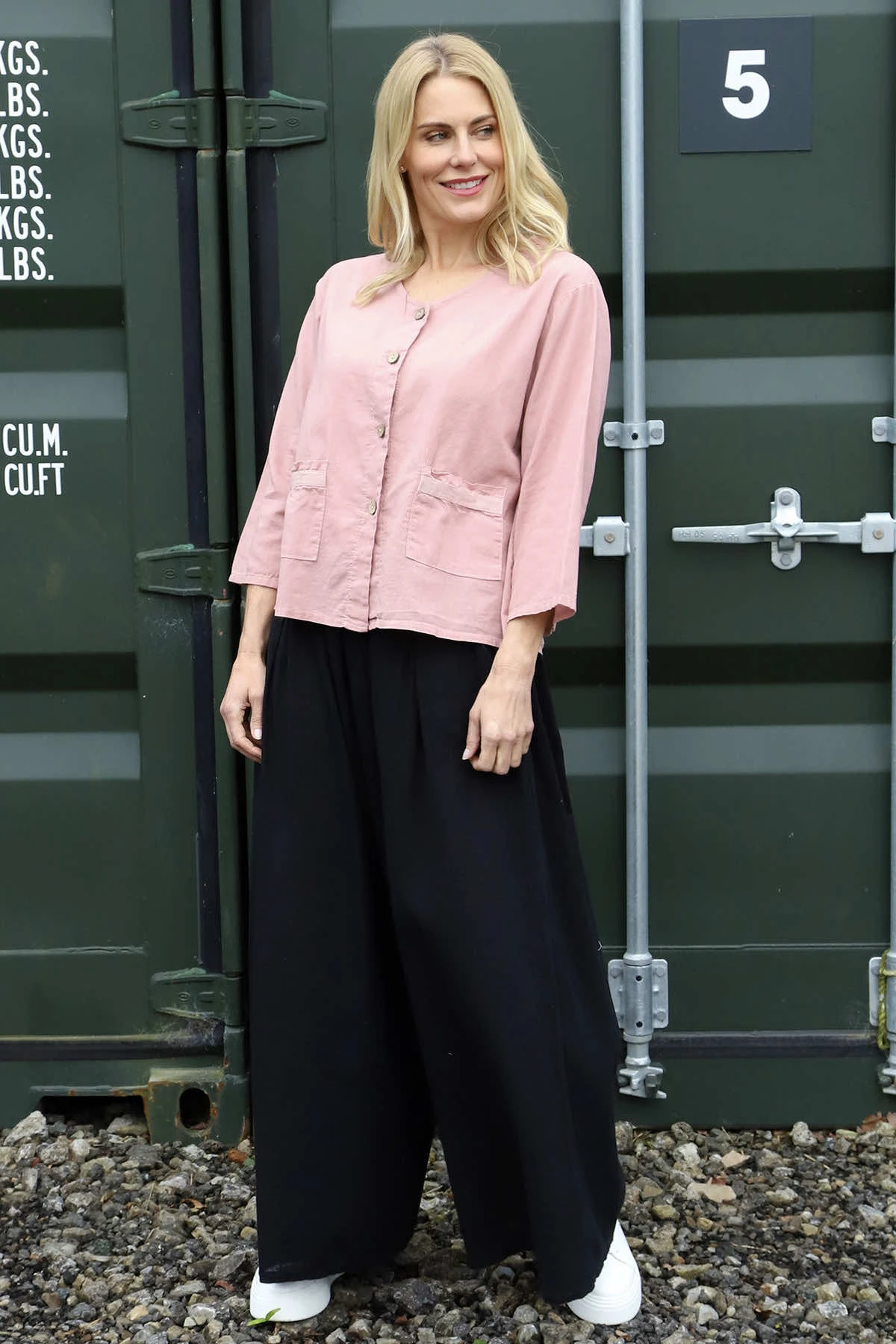 The Trish Wide Leg Trousers are expertly crafted with linen fabric and an elasticated waistband to provide both comfort and style. The back is elasticated, while the front lays flat for a flattering look. Perfect for versatile wear, these trousers are a must-have addition to your wardrobe.