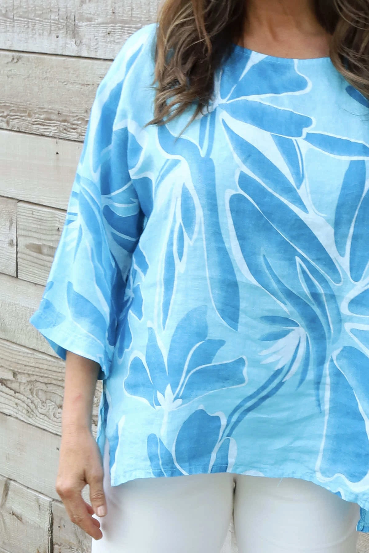 Vicki Pattern Linen Top Kingfisher